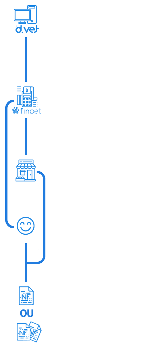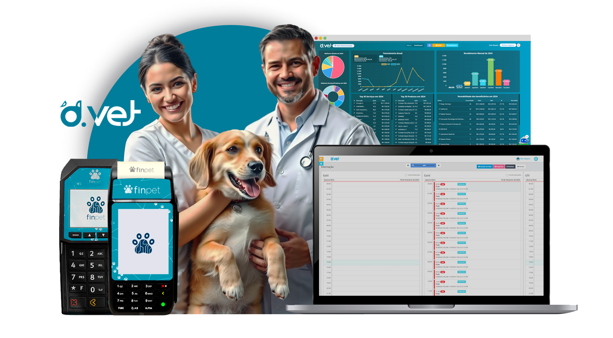 O estabelecimento faz o cadastro do pet e do tutor, agenda a consulta, realiza o atendimento e seleciona o profissional previamente